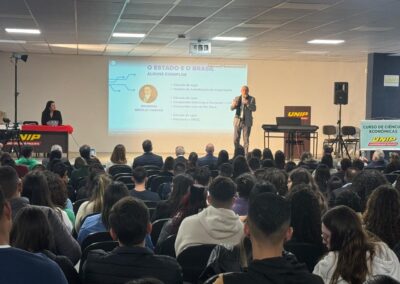 Anfitrião da noite, o diretor da UNIP Campinas, Cristiano Ricardo Cazarin, abriu o evento agradecendo ao Corecon-SP por sediar o Café no campus. Ele destacou a missão da instituição de formar pessoas capazes de transformar a realidade. “Encontros como este fortalecem o diálogo entre a academia e a sociedade, ampliando oportunidades e perspectivas”, afirmou.