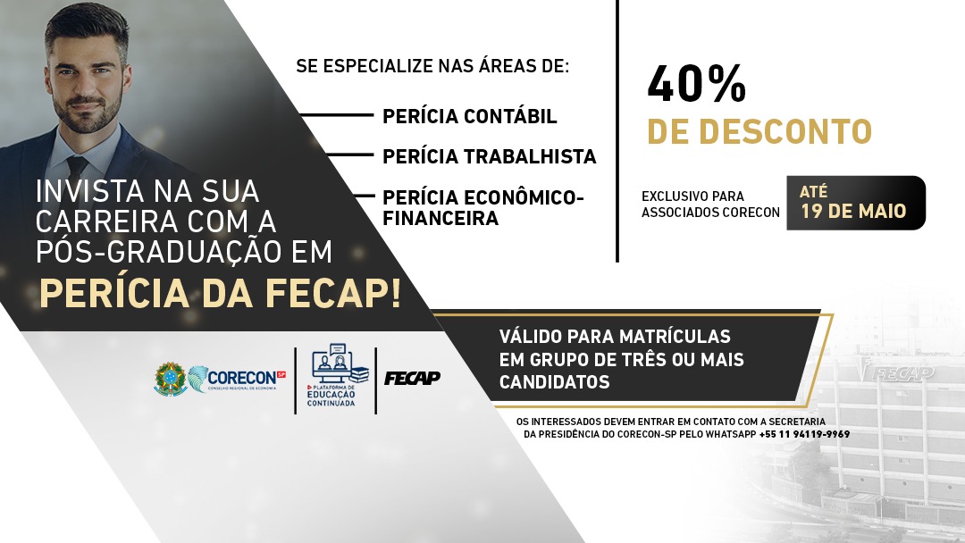 O Conselho Regional de Economia de São Paulo (Corecon-SP) firmou uma parceria especial com a renomada Fundação Escola de Comércio Álvares Penteado (FECAP) para oferecer condições exclusivas na Pós-Graduação em Perícia.