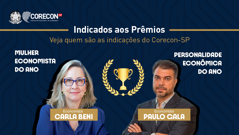 Em sua última Sessão Plenária, realizada no dia 07 de agosto, o Plenário do CORECON-SP definiu o nome de Paulo Gala para concorrer à honraria “Personalidade Econômica do Ano” e o de Carla Beni como “Mulher Economista do Ano”.