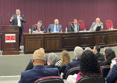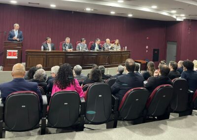 Já na segunda sessão, em que se discutiu o Superendividamento, foram palestrantes o Desembargador Tasso Duarte de Melo, o Juiz Alexandre David Malfatti, o Advogado Álvaro Felipe Rizzi Rodrigues, representando o Banco Itaú Unibanco, e o Desembargador Roberto Mac Cracken.