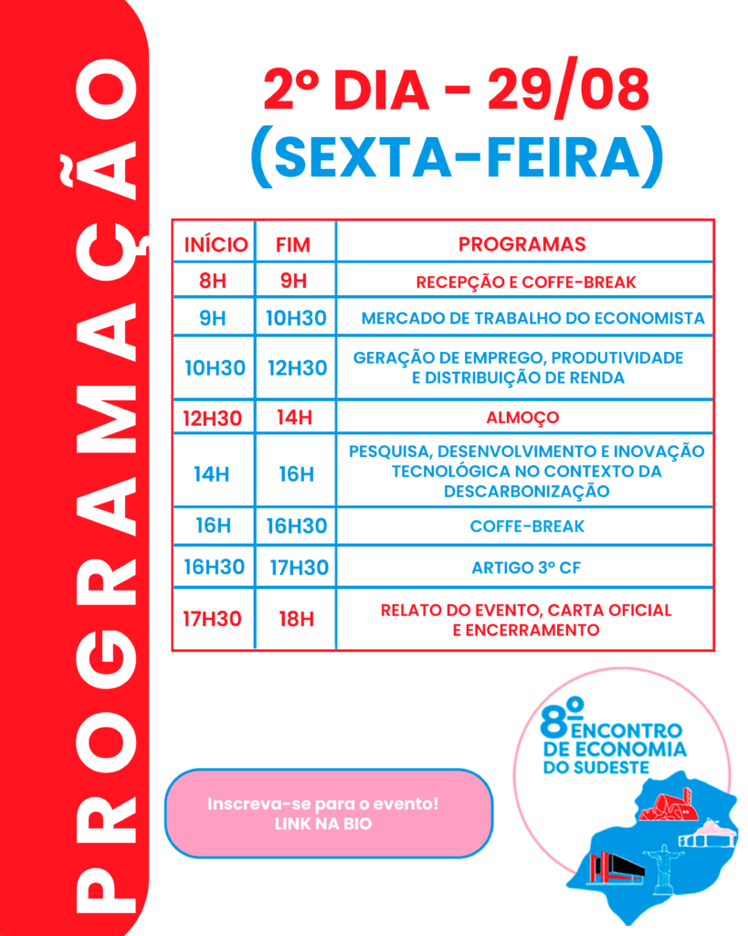 Confira a programação e INSCREVA-SE: https://economia.coreconsp.gov.br/encontro-de-economia-do-sudeste