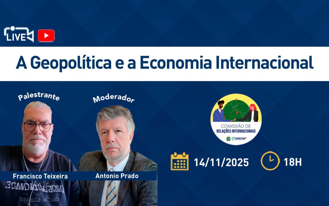 Como atividade de lançamento dessa nova frente, o Conselho, por meio da Comissão de Relações Internacionais, convida para a live inaugural que abordará o tema “A Geopolítica e a Economia Internacional”, que será realizada no dia 14 de novembro, às 18h, na TV Economista.