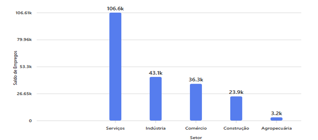 O Setor de Serviços em Setembro de 2025 foi gerado um saldo de 106.606 postos de trabalho. Os dados registraram saldo positivo no nível de emprego em cinco, dos Grandes Grupamentos de Atividades Econômicas:
