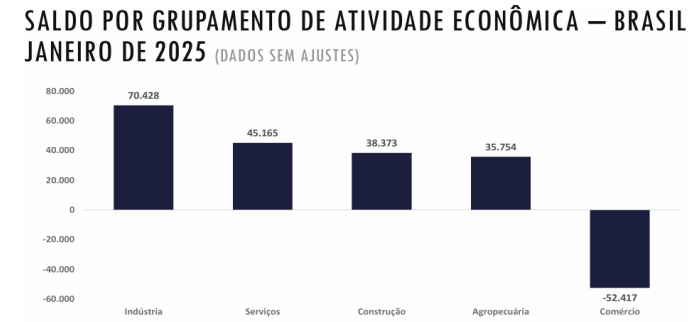 O setor de serviços, que é historicamente o maior gerador de empregos formais no Brasil, teve um saldo positivo de 45.165 novas vagas. Apesar de continuar liderando a geração de postos de trabalho, a desaceleração na prática contribuiu para um crescimento mais modesto. Esse setor, que abrange atividades como educação, saúde, turismo e tecnologia, tem sofrido os impactos da política monetária restritiva e das incertezas econômicas.