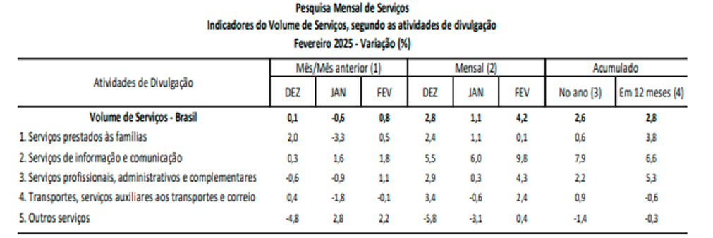 O avanço de 0,8% no volume de serviços em fevereiro de 2025 representa um sinal de resistência da economia brasileira. No entanto, é essencial monitorar os próximos
