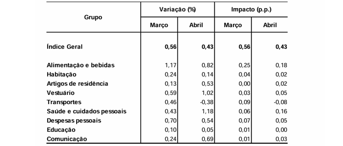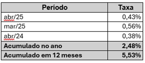 O IPCA geral de abril ficou em 0,43%, abaixo dos 0,56% de março, indicando uma desaceleração da inflação no mês. No entanto, a inflação de serviços não caiu na mesma proporção, o que indica que o núcleo da inflação especialmente aquele menos volátil segue sendo pressionado.