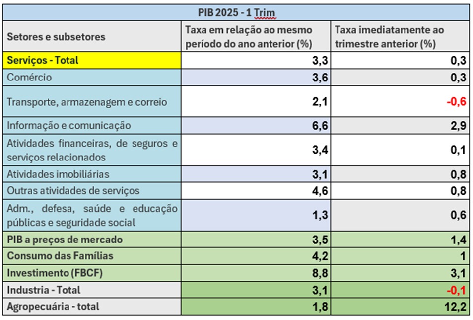 O desempenho do PIB no 1º trimestre de 2025 confirma a resiliência da economia brasileira, com destaque para a manutenção da trajetória positiva no setor de serviços. Apesar das incertezas externas e do ambiente de juros altos, o mercado interno continua sendo a principal âncora do crescimento, com serviços mantendo protagonismo, especialmente nas áreas digitais, imobiliárias e de consumo.