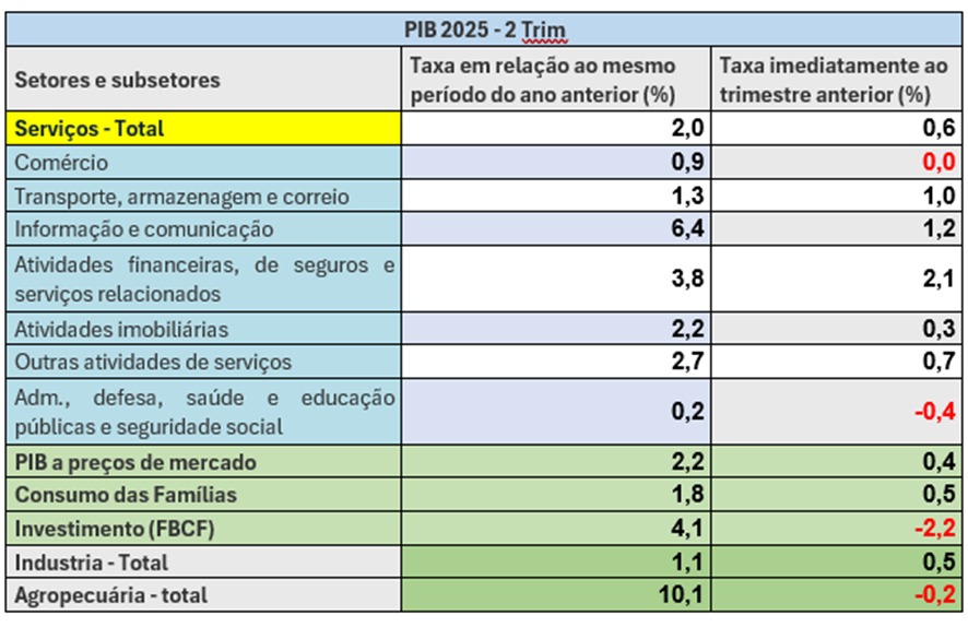 PIB do 2º Trimestre de 2025: setor de serviços sustenta crescimento em meio a desafios