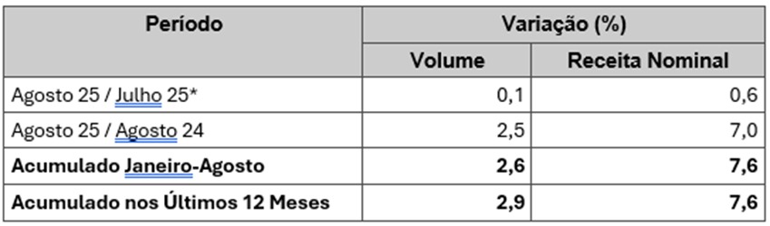 Esse resultado consolida sete meses consecutivos de crescimento, elevando o setor ao maior nível da série histórica. Mostra resiliência da economia brasileira. Na comparação com agosto de 2024, o volume de serviços avançou 2,5%, a 17ª taxa positiva consecutiva. O resultado reflete a resiliência do setor.