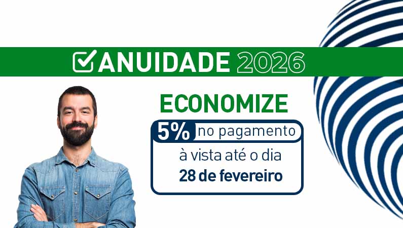Não perca a oportunidade de garantir 5% de desconto no pagamento à vista da sua anuidade. O prazo para obter o benefício encerra-se em 28 de fevereiro.