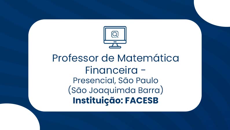 A Faculdade de Ciências, Saúde e Tecnologia de São Joaquim da Barra (FACESB) está com vaga aberta para Professor de Matemática Financeira. Confira as informações sobre a oportunidade!
