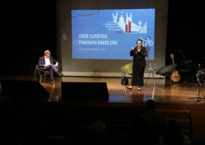 No painel que analisou as questões climáticas, a Doutora em Relações Internacionais pela London School of Economics e PHD em cooperação internacional, com especialidade em governança global (comércio, clima & sustentabilidade e gênero) e mercado europeu, Carolina Pavese contextualizou o assunto revelando que o Brasil tem perdas de R$ 13 bilhões anuais devido aos eventos climáticos extremos e que essa situação produzirá um total de 800 mil a 3 milhões de brasileiros vivendo em extrema pobreza até 2030.